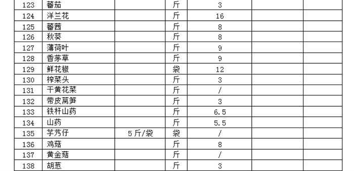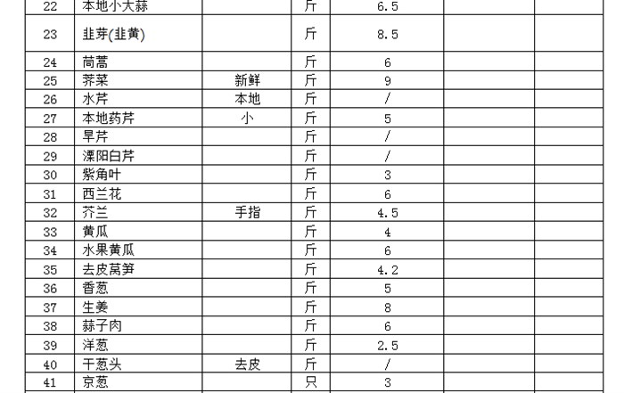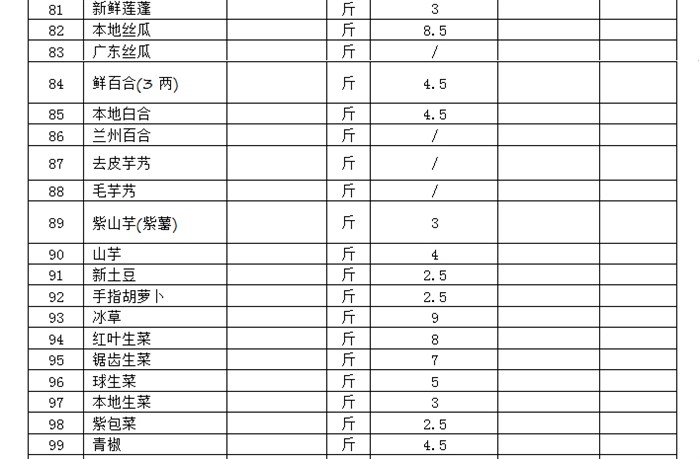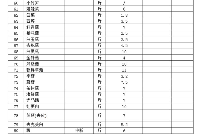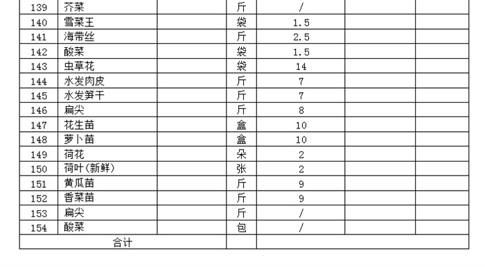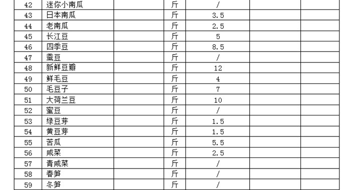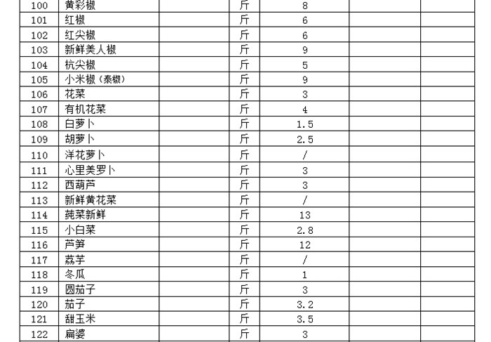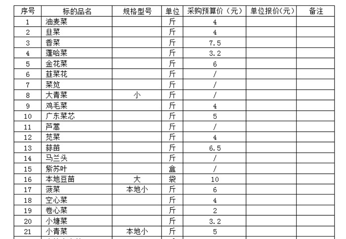 投标报价表(蔬菜)