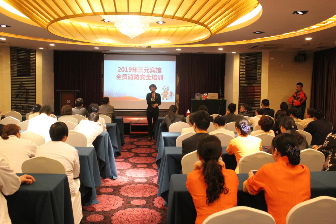 4月15日下午两点,三元宾馆在多功能厅举办今年上半年度全体员工消防安全知识培训,本次培训专门聘请南京安居防火培训中心的周宇峰教员为全体员工介绍有关消防的安全知识。