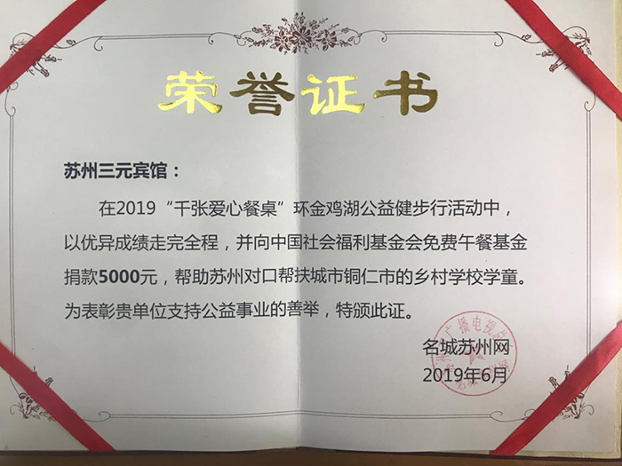 三元宾馆(酒店管理系)积极响应并参与此次爱心公益活动,爱心捐款五千元,为“千张爱心餐桌”公益活动献出我们的一份爱心和力量,让需要帮助的孩子们能好好吃饭,健康成长。在活动启动仪式结束后,浩浩荡荡的队伍从文博广场出发,沿着金鸡湖步道一路步行至东方之门,完成4公里的健步走,真正做到用脚步和爱心宣传公益。通过参加此次“千张爱心餐桌”环金鸡湖公益健步行活动,让三元宾馆(酒店管理系)的管理人员和党员们受到一次很好的公益教育,切身领悟公益的意义,增强了大家的社会责任感,也使企业在公益活动中体现了社会价值,扩大了品牌知名度。