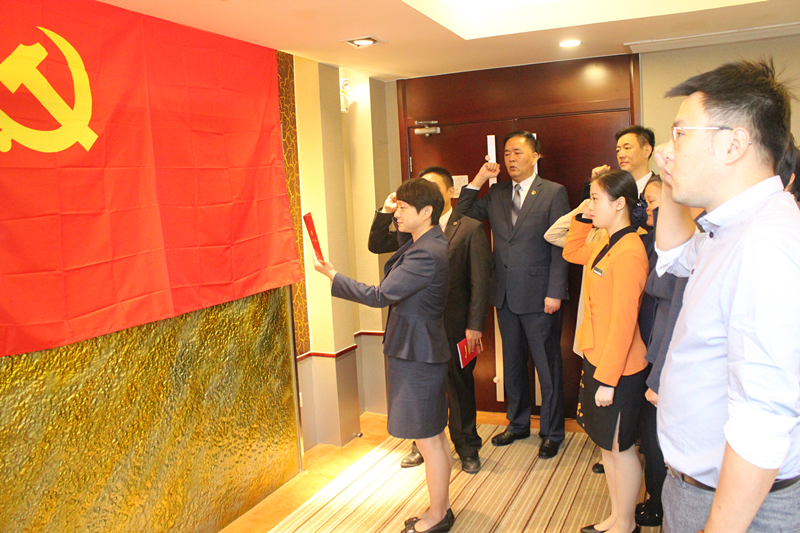 全体党员面对鲜红的党旗,在第二党支部书记沈洁红同志的带领下,再一次郑重握紧右拳高高举起,重温入党誓言、郑重宣誓,表达了对党忠诚、坚定理想信念和为党奋斗终生的决心和信心。