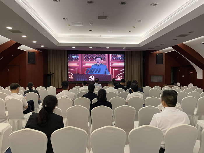 庆祝中国共产党成立100周年大会于今天上午8时在北京天安门广场隆重举行。根据学院“关于组织收听收看庆祝中国共产党成立100周年大会的通知”精神,酒管系(三元宾馆)党总支组织全体党员、主管以上管理人员及部分员工在五楼报告厅、三元厅,集中观看大会实况直播。