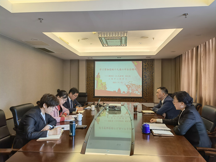 11月15日上午,酒店管理系(三元宾馆)党总支在宾馆三楼会议室召开二级中心组学习会议,专题学习十九届六中全会精神。酒店管理系(三元宾馆)党总支全体委员参加了学习,会议由党总支书记强佩华主持。