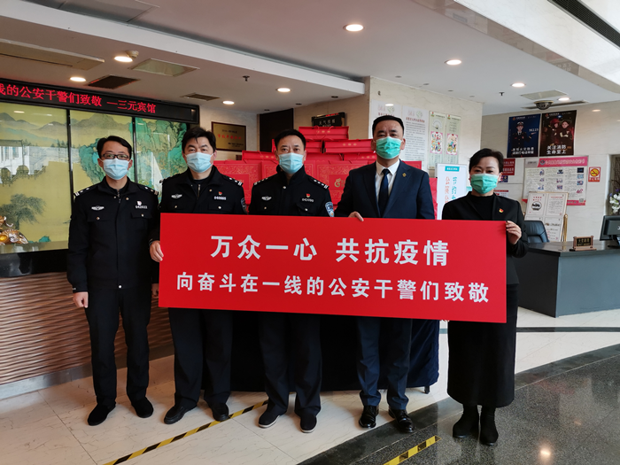 为了表达对抗疫一线公安干警、辅警的深深敬意,2月26日三元宾馆向住店的公安干警们送上了感谢信和慰问品,向抗击疫情的“逆行者”们致以最崇高的敬意和深深的感谢!
