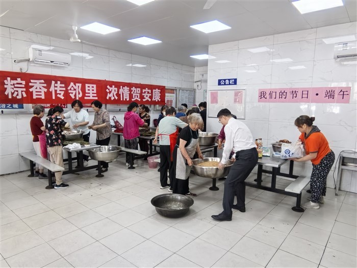 活动前期,支部全体党员们和社区工作人员通力合作,准备了丰富的包粽子材料,包括糯米、粽叶、肉类、红豆、蛋黄、红枣和蜜枣等,确保每个环节都安排到位。5月29日下午,支部党员、社区工作人员和热心居民们,围坐在宾馆食堂,大家分工合作,互教互学、争先恐后的参与到包粽子的过程,在愉快和谐的氛围中共同分享端午节包粽子带来的乐趣与体验。活动最后,社区工作人员将包好、煮熟的爱心粽子纷纷送到社区孤寡老人们家中,所到居民家每位老人脸上都洋溢着幸福的笑容,感受到端午的浓浓氛围和节日仪式感。此次主题党日活动为党支部和社区共建创造了良好的互动交流平台,深化了彼此之间的理解与合作,展现了新时代党建工作的生机与活力,为建设和谐社区凝聚人心打下扎实基础。